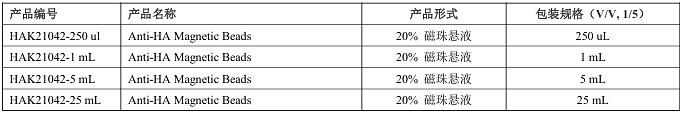 产品形式:Anti-HA免疫磁珠保存在PBS,pH7.4添加防腐剂的缓冲液中,以20%的悬浮液形式提供。